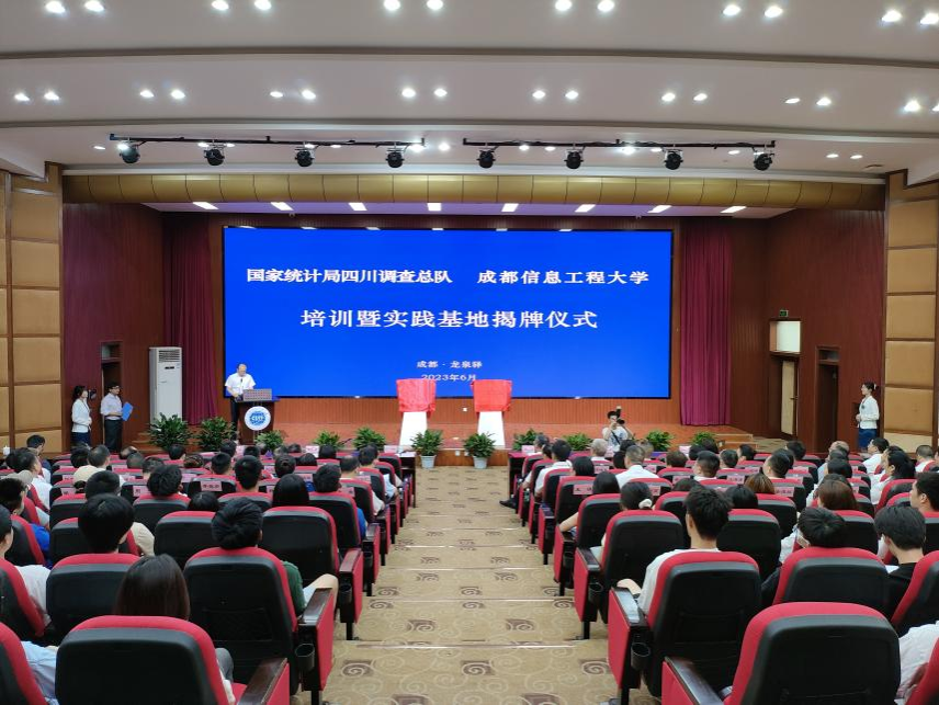 【本网讯】6月20日,国家统计局四川调查总队与成都信息工程大学培训暨实践基地揭牌仪式在我校龙泉校区举行。国家统计局教育培训中心副主任程宏丽,四川调查总队党组书记、总队长赵太想,学校校长何建新,四川调查队各市县级调查队负责人以及学校部分师生代表300余人参加了揭牌仪式。